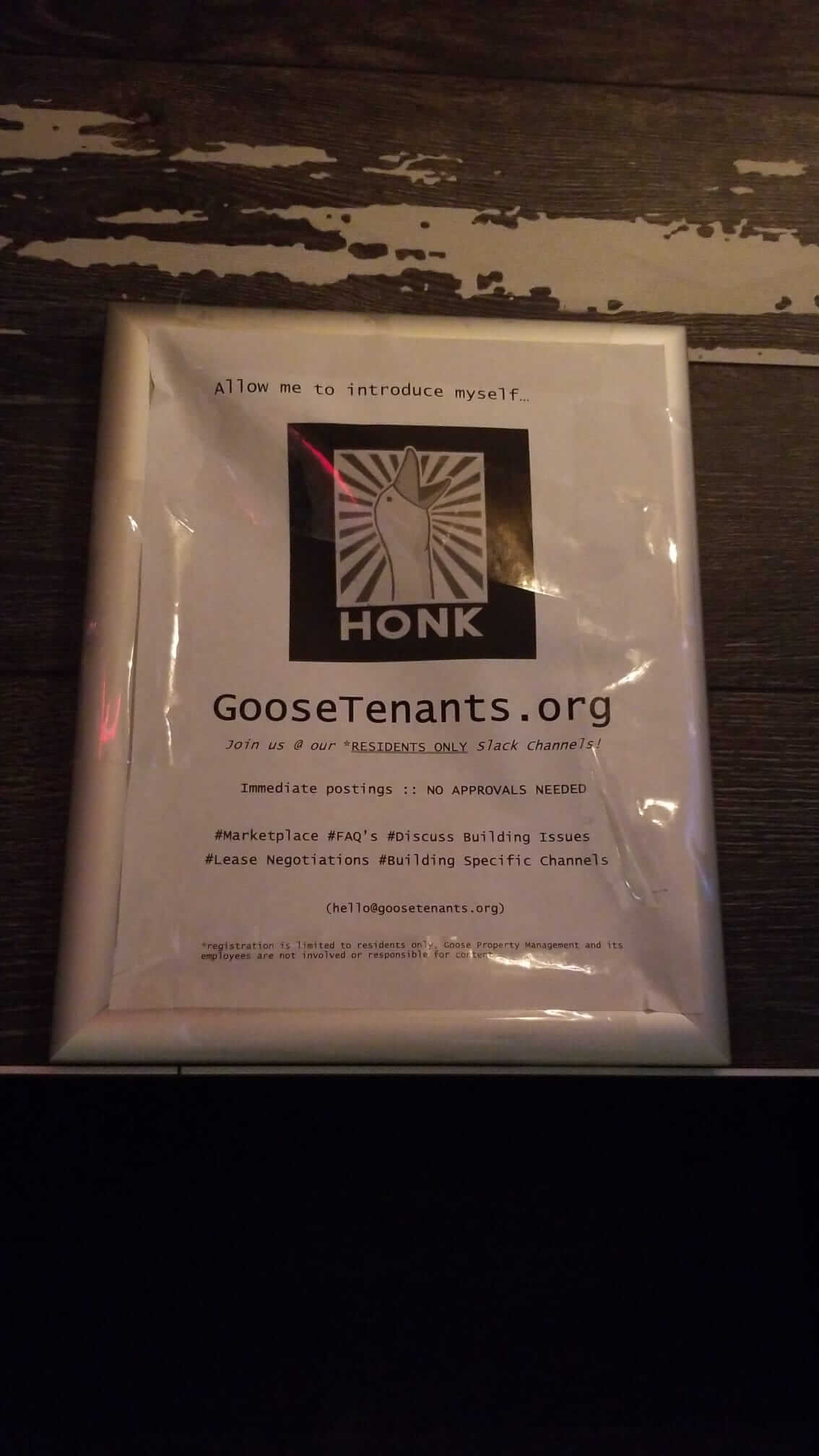 “It has always been the policy of Goose Property Management/The Rabsky Group to respect our tenants’ rights,” the rep wrote. “We have not and will not obstruct any attempt to have our tenants organize as we understand our tenants’ needs and rights and will always stand up for that.”