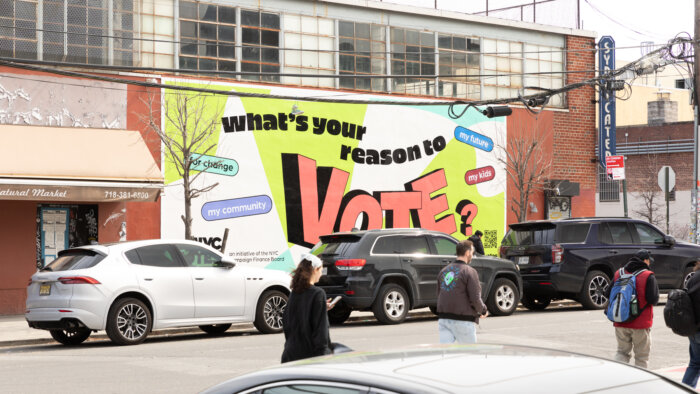 NYC Votes, an initiative of the New York City Campaign Finance Board (CFB), has installed six murals across Brooklyn and Manhattan to encourage New Yorkers to get out and vote in the upcoming April presidential primary election.