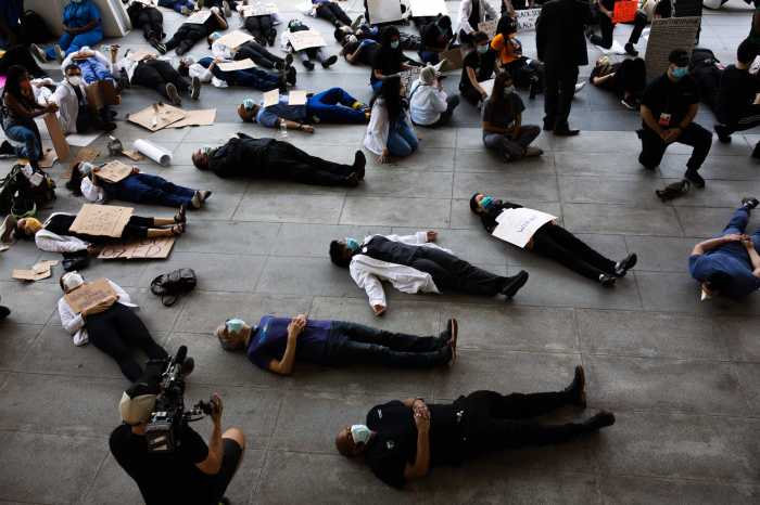NYPD spokesperson Sgt. Mary Frances O’Donnell says the officers were tailing a group of protesters from Grand Army Plaza when cops claim the protesters began to block traffic at Seventh Avenue and President Street, where cops ordered them to disperse. Officers issued no summonses and did not make any arrests in relation to the incident, O’Donnell said.
