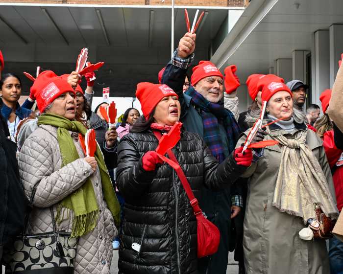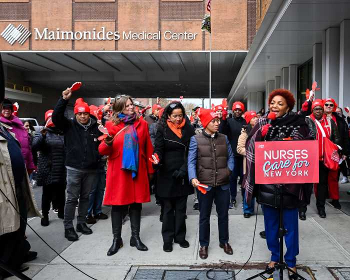 At a rally outside Maimonides Health in Boro Park on Nov. 13 — the health care provider is one of the private-sector hospitals — NYSNA nurses and local pols mobilized, demanding that safety-net hospitals such as Maimonides ensure safe staffing and protect healthcare in New York ahead of the Trump administration’s impending healthcare cuts. New York could lose $4.9 billion in federal funding for the healthcare system and likely see an increase in the number of uninsured New Yorkers.