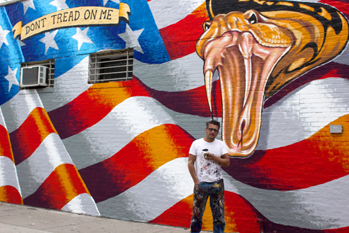 “Don’t tread on me, and don’t tread on this flag,” said a paint-speckled LoBaido as he finished his mural add-ons. “This snake has been provoked and now it’s coming at you.”