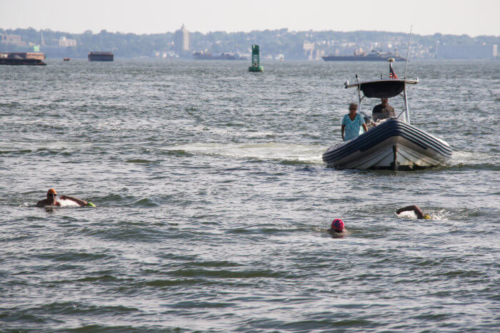 “It’s almost like two swims in one because before you get to the Verazzano-Narrows Bridge from Coney Island, that’s just very much open waters — the only thing around you is ships and boats, which is fun,” he said, “and then once you pass the bridge you are in the harbor and sightseeing more.”