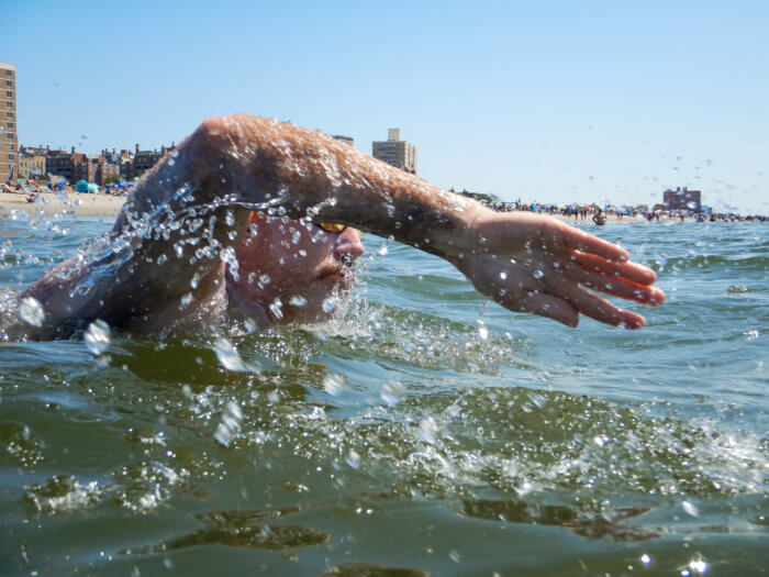 The group’s next open water swim will be a two-mile round-trip from Coney Island to Manhattan Beach this coming weekend to get some fries (Djatiasmoro said the group has done it before, but the concession stand’s franks don’t always fare so well when you’re about swim another mile).