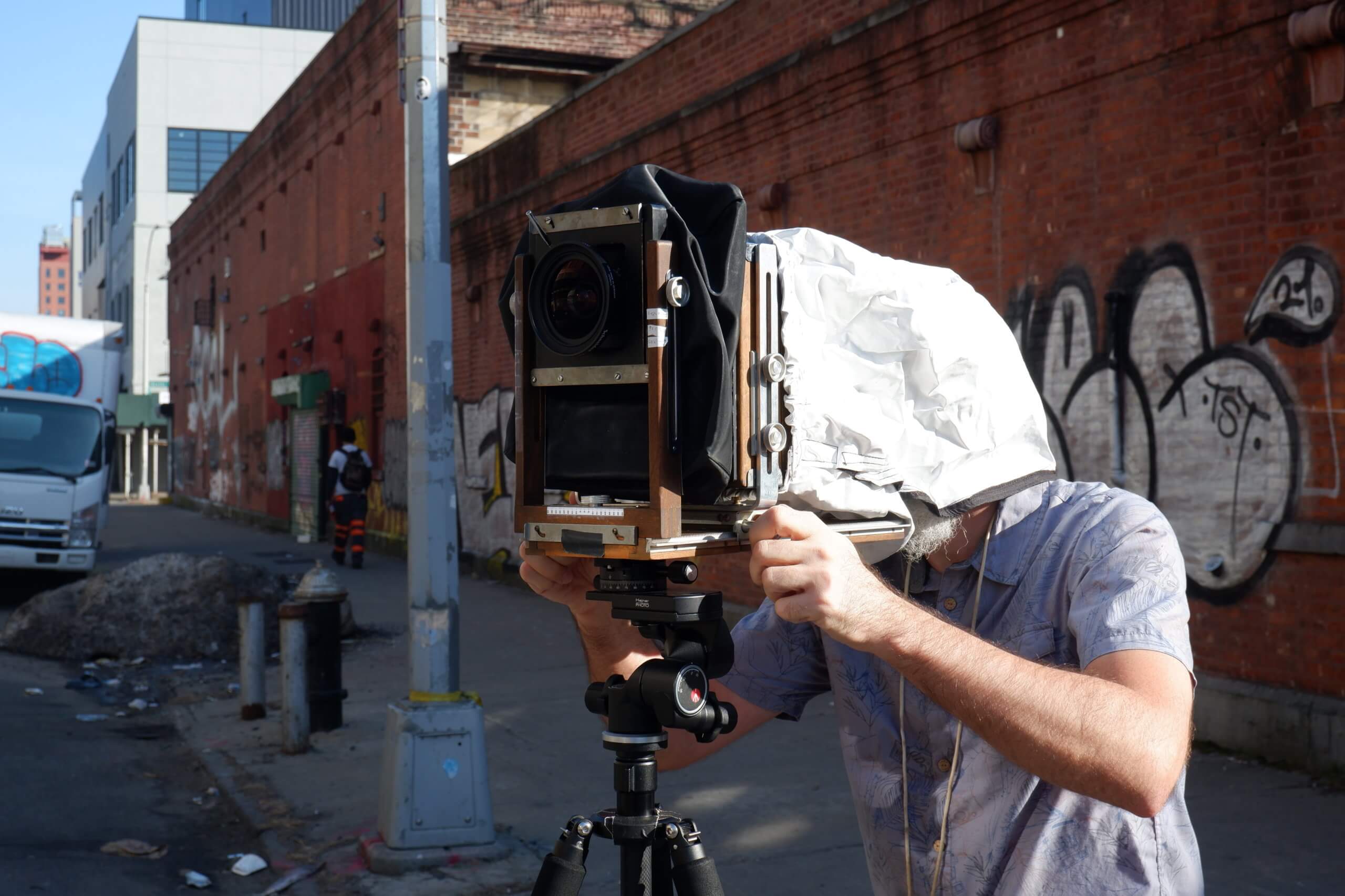 The process is labor-intensive and involves Draskoczy schlepping around the camera in a suitcase and making sure he has the exact right light conditions to suit the fragile plates, while also dealing with curious passers-by and obstructions in front of his subjects.