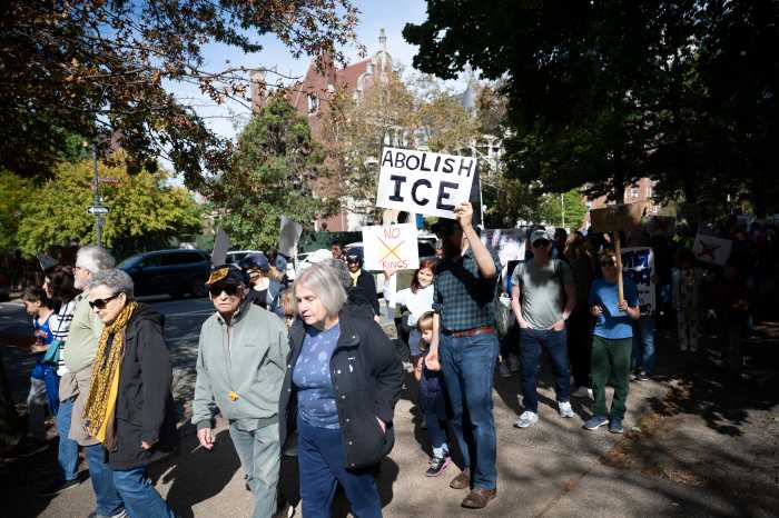 Roughly 3,000 Brooklynites marched through Park Slope on Saturday to denounce President Donald Trump and his cabinet as part of the nationwide “No Kings” march.