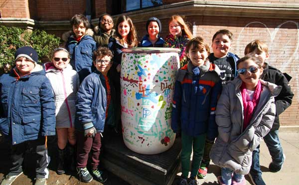 Much of the materials she uses in her murals are recyclable materials that have been found in parks and other green spaces while others have been donated to her by her schools.