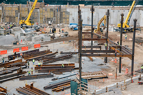 One hundred tons of steel arrived at the site last week, a small portion of the 10,500 tons of the stuff that will be used in the arena.