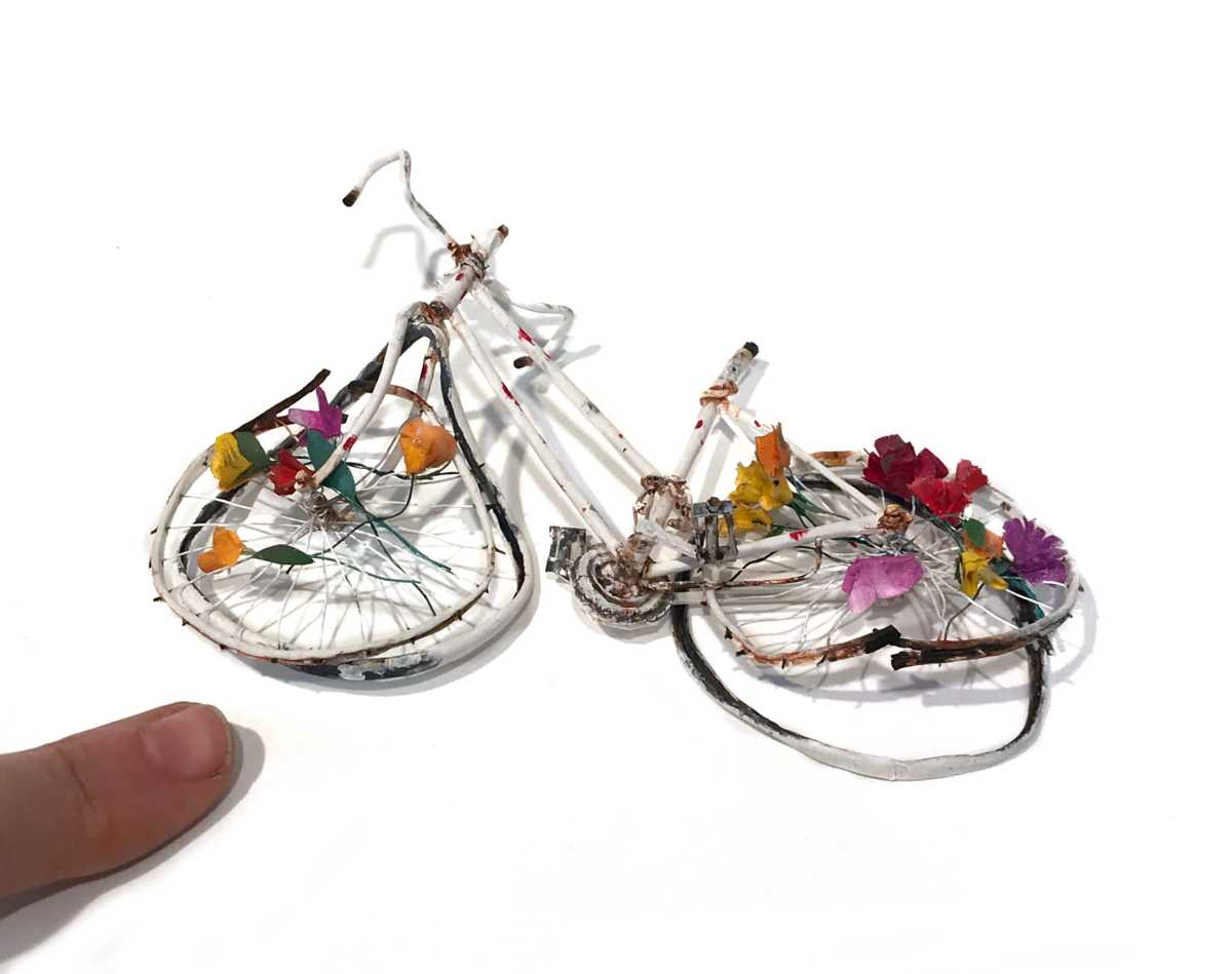 Among Grobstein’s creations is a 5-inch-long ghost bike, based on an actual white-painted bicycle near her former Bushwick studio that honors 23-year-old cyclist Timothy “TJ” Campbell, who was fatally struck by a garbage truck there in 2010.