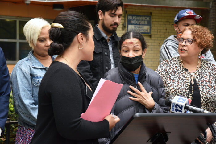 “We are negotiating a plan with NYCHA in conjunction with the federal government, and Bushwick Houses is first on the list to get repairs,” she said to applause from the crowd.