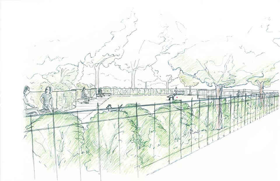 Dogged by delays: The Prospect Park Alliance back in 2017 shared renderings of the Parade Ground dog run, construction of which recently suffered a setback when the city's chosen contractor pulled out of the job.