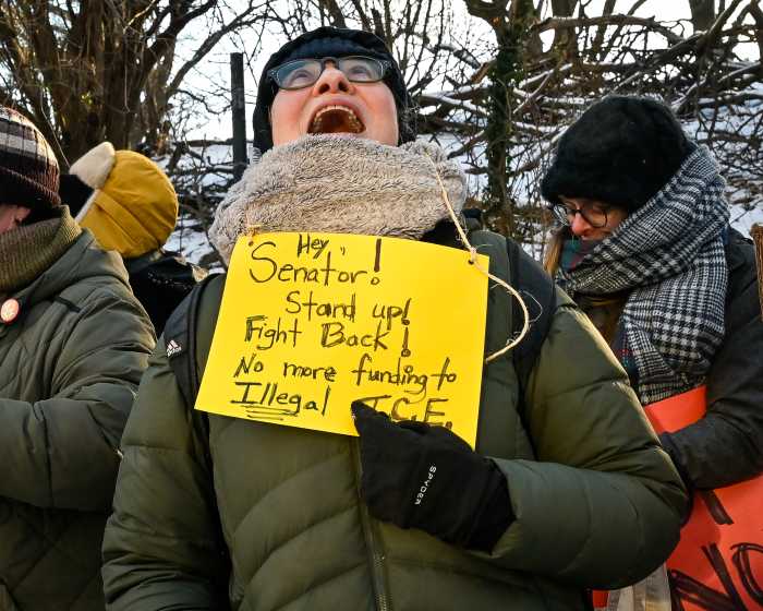 “They need Democratic votes in order to pass this budget. So he has leverage; he needs to use it,” Raymond Tolan said. “So we’re out here cold, early, and pretty much every day this week to tell him to fight, not fold.”