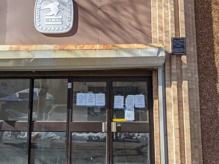 Use of retail services is suspended until further notice while mail carriers work out of a nearby USPS post office, Gibbs told Brooklyn Paper, and post office box holders can pick up their mail daily at 2370 E. 19th Street during business hours.