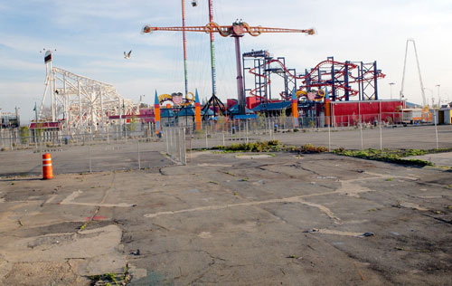 Sitt briefly rented the space between Stillwell Avenue and W. 15th Street to Cha Cha’s Steeplechase Fun Park, but the theme park was destroyed in Hurricane Sandy and has since sat vacant, steadily accumulating rubbish.