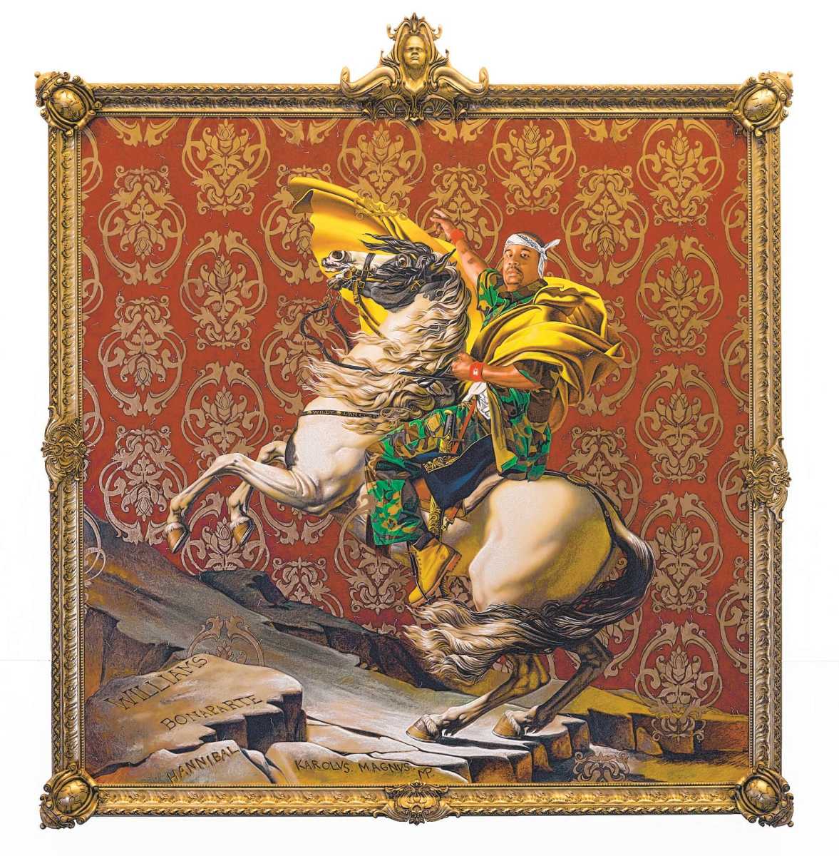 Artist Kehinde Wiley — who painted Obama’s official presidential portrait — gained his fame with “Napoleorn Leading the Army over the Alps,” an image of a black man in contemporary street clothes, painted in the same pose as Napoleon Bonaparte in the 19th-century portrait “Bonaparte Crossing the Alps,” by Jacques-Louis David.
