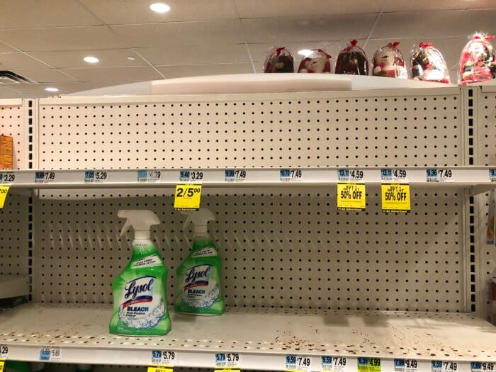 Staff reported stockpiling at all seven stores surveyed by Brooklyn Paper in Downtown Brooklyn, Brooklyn Heights and Park Slope, with customers making a b-line for cleaning and healthcare products including Lysol, hand sanitizer, bottled water, wet wipes, face masks, gloves and cold and flu medication.