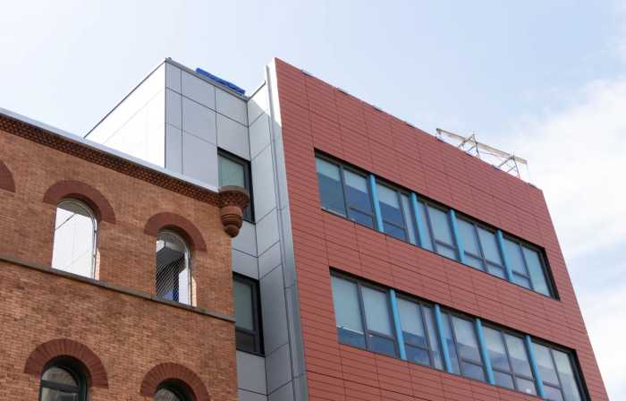 A new-building permit for a four-story school “with the integration of two historic street facades” was approved in 2019 and last renewed in April this year. A rep from DOE said the new facade is the last of the ongoing work.