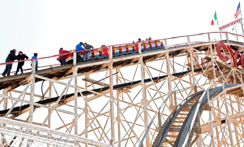 Luna Park staff climbed the coaster and escorted stranded riders down a series of wooden steps to terra firma with no injuries reported. The thrill was there, but the spills came the next day, Elsener said.
