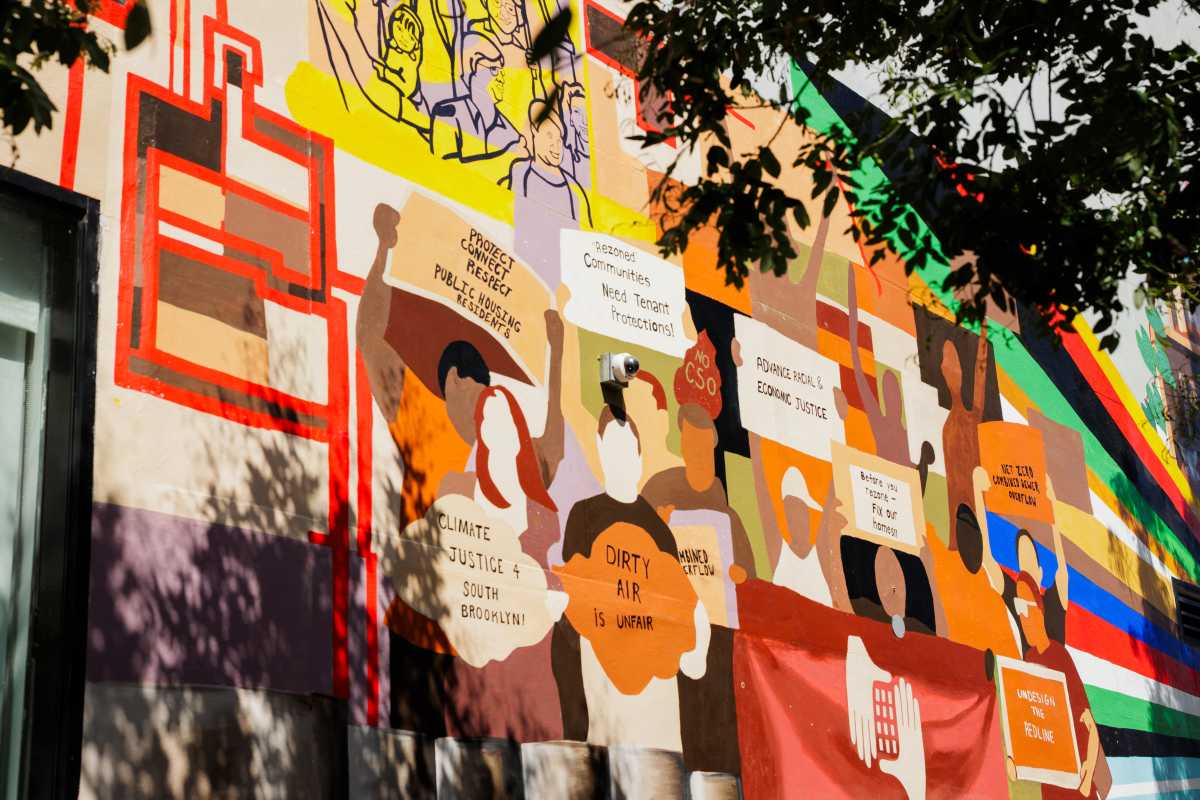 The mural, spanning the building’s facade, pays tribute to the resilience and advocacy of Gowanus organizers and residents who have shaped the neighborhood through decades of struggle and transformation. It was created after months of research, interviews, a community listening session and on-the-street interviews with locals.