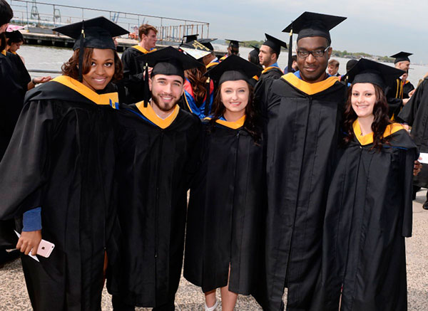 Dressed in their regalia and mortar boards, the 2016 graduates of St. Francis College braved a bit of wind and took their last walk at Brooklyn Bridge Park, where two valedictorians and nearly 350 graduates celebrated the 2016 commencement ceremonies on May 10.
