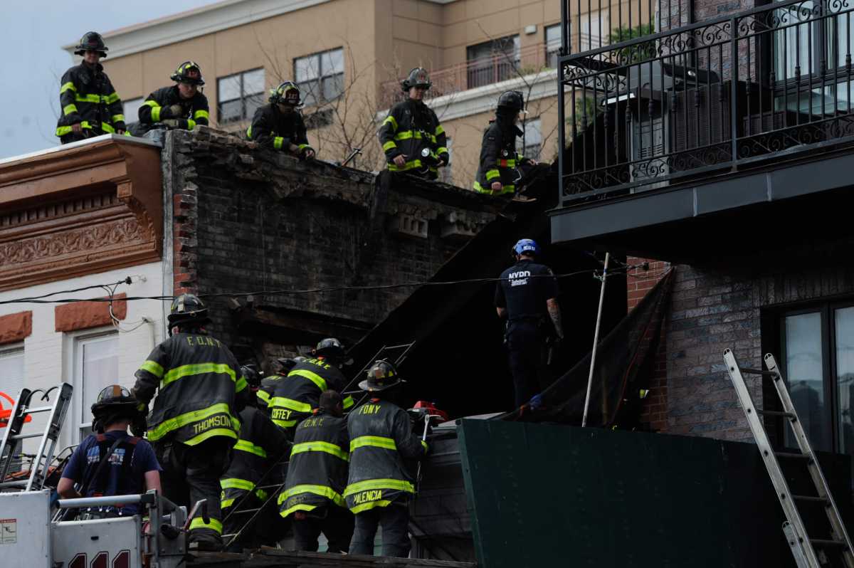According to the Department of Buildings, the workers were performing demolition work at the building when they were injured by falling debris from the partial roof collapse. A DOB inspection of the site is ongoing, according to department spokesman Andrew Rudansky.