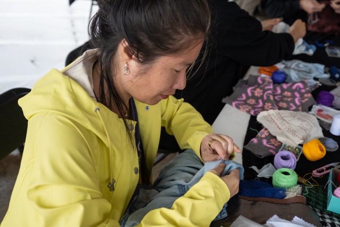 “I was really excited to learn how to mend this garment so I can wear it longer,” Yeung told Brooklyn Paper. “This is my first time mending. I’m so excited.”