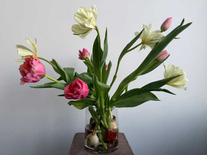 The arrangements produced by these sustainable shops sacrifice none of the color or beauty of a traditional bouquet. A floral arrangement from Molly Culver, owner of Molly Oliver Flowers in Sunset Park, features tulips, ranunculus and anemones — all seasonal to the Greater New York area this time of year. Her small business is dedicated to supporting local growers and purchasing seasonal flowers year-round.
