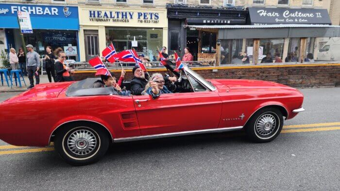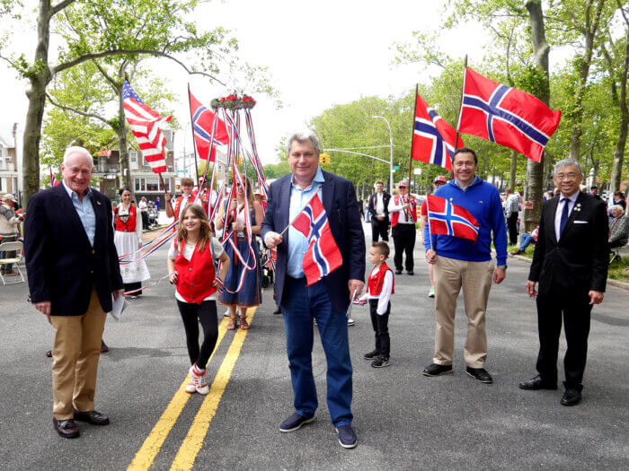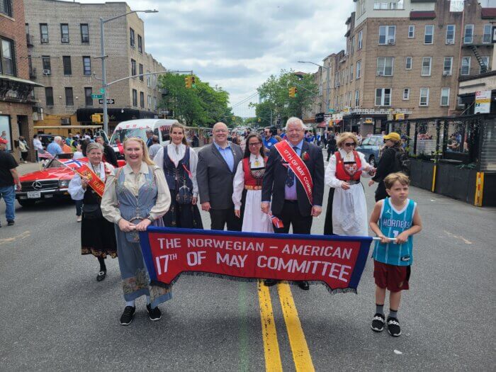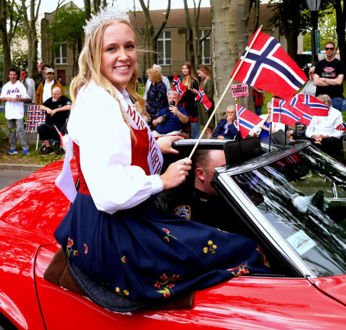 Sunday’s Norwegian Day parade, held to commemorate the signage of the country’s constitution on May 17, 1814, saw red white and blue flags peppered across the nabe with locals dressing up in their best bunads — a Scandinavian term for traditional garb.
