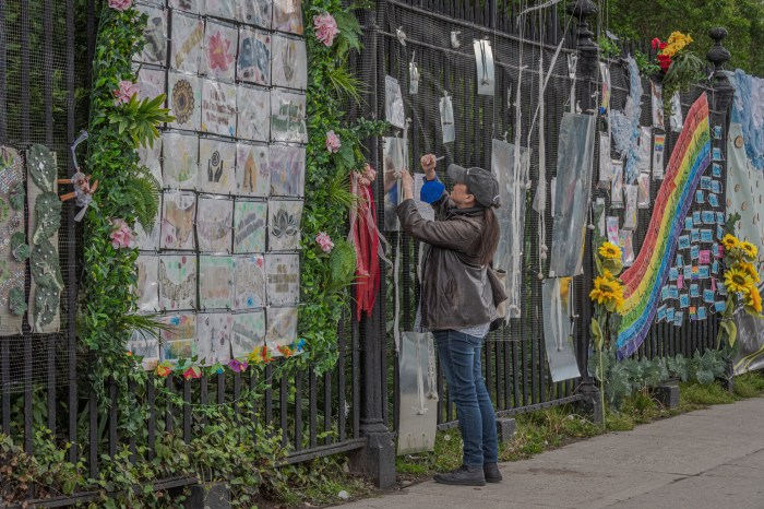 “A Big Slow, Majestic Covid Memorial” will be hung on the wrought-iron fence near Green-Wood’s visitor center near Fifth Avenue and 25th Street from May 3 to June 3, 2024. The dense, 200-foot-long memorial will honor the roughly 83,000 New York City residents who have lost their lives to the virus, and those suffering from Long COVID.
