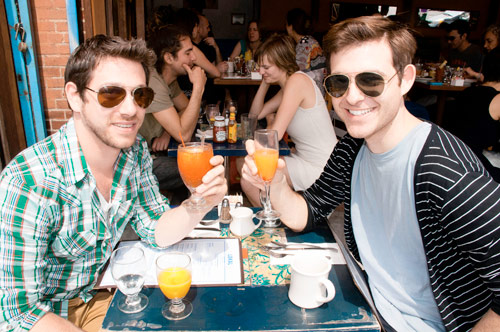 The front lines of the bloody mary battlefield is a three block area near the northern tip of McCarren Park where several restaurants operate sidewalk cafes.
