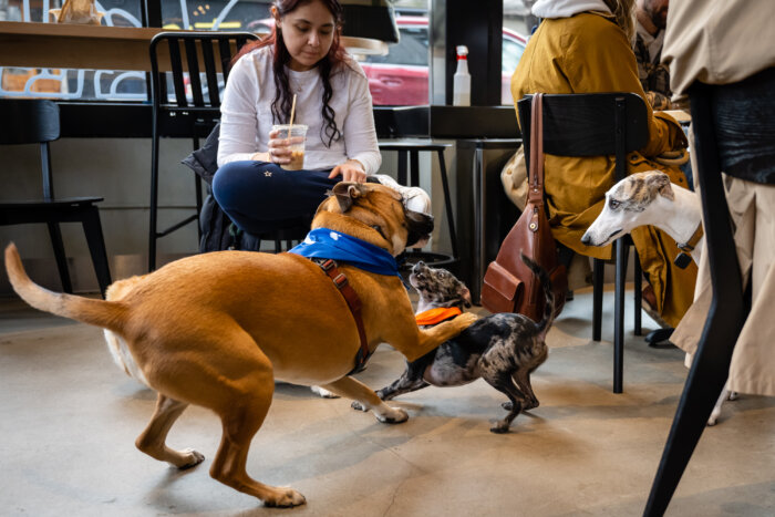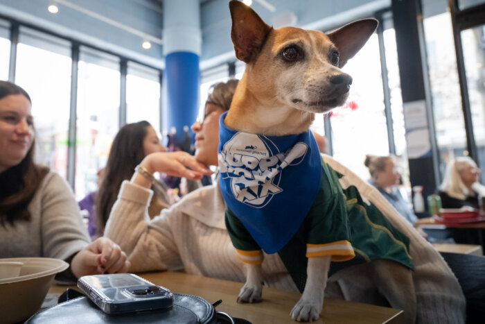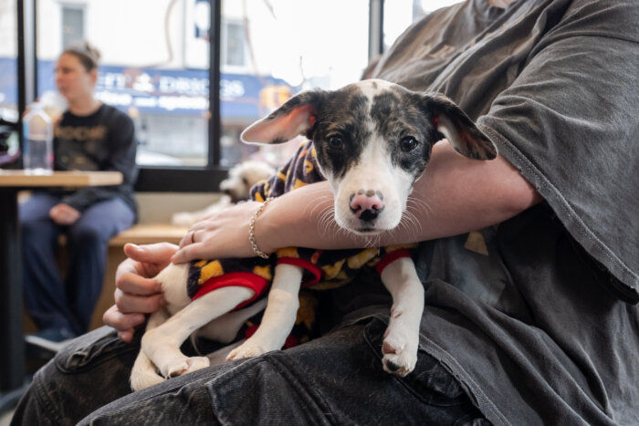 A few hours before Super Bowl LVIII kicked off, dog-friendly coffee house Boris and Horton teamed up with Best Friends Animal Society to host a Puppy Bowl XX viewing party for furry friends and their “hoomans” in Williamsburg.