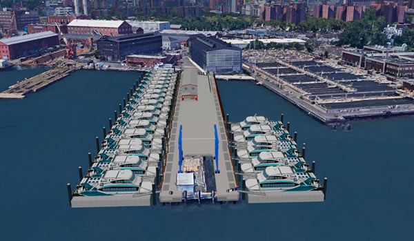 The newly revealed Navy Yard stop will join the existing East River Ferry route — which sails between Dumbo and Greenpoint — and won’t open until 2018. The Fort Greene former shipyard will also house the new ferry system’s “home port,” where operator Hornblower will dock, refuel, and maintain its 20-vessel fleet, DeBlasio said.