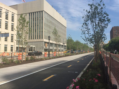 “The project is designed and built to create a safe environment to accommodate the volumes of bicyclists, vehicular traffic, and pedestrians,” said Shavone Williams, who is a spokeswoman for the Department of Design and Construction, the agency overseeing the revamp.