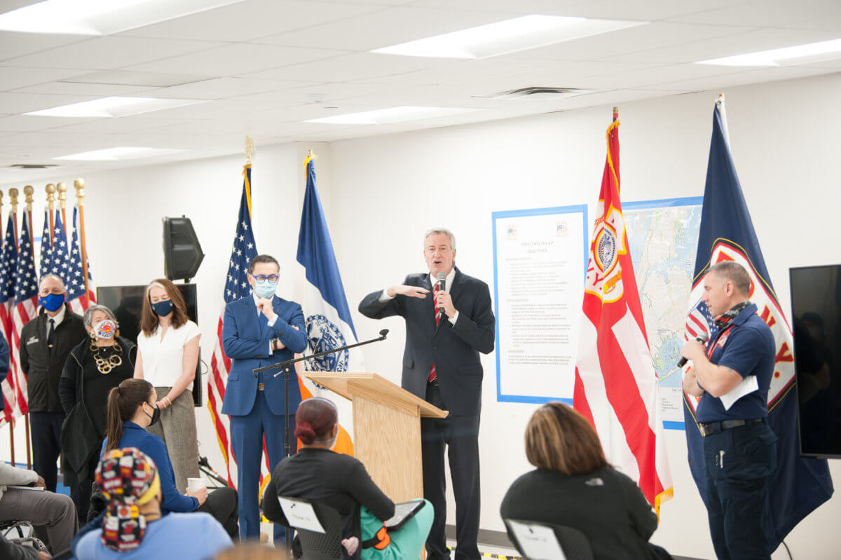“This is absolutely beautiful, what you’re doing for people literally in the greatest need in this whole city,” de Blasio told team members on March 30. “They can’t get to the vaccination. And unless you were there, they’re going to be alone. They’re going to be isolated. They’re going to be fearful. Their families are going to be fearful for them. But then you show up, and you literally saved the day.”